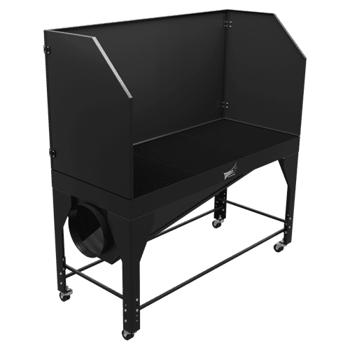 Down draft tables are workstations that pull dust, smoke, and fumes down through built-in ventilation, keeping the air cleaner during tasks like welding, grinding, or sanding.